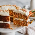 Carrot cake is best served at room temperature. You can slice it into generous pieces and place it on plates. If you’re feeling fancy, a sprinkle of additional chopped walnuts on top or a drizzle of extra cream cheese frosting can make it look even more appealing. It pairs wonderfully with a cup of tea or coffee, making it a perfect afternoon treat.